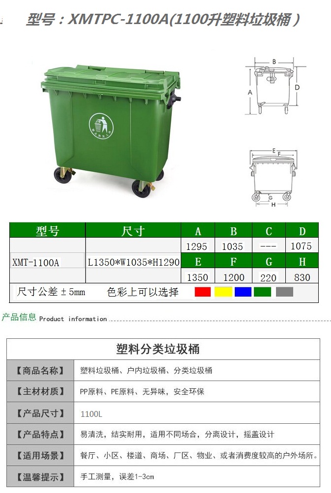 戶外大型四輪塑料垃圾桶系列